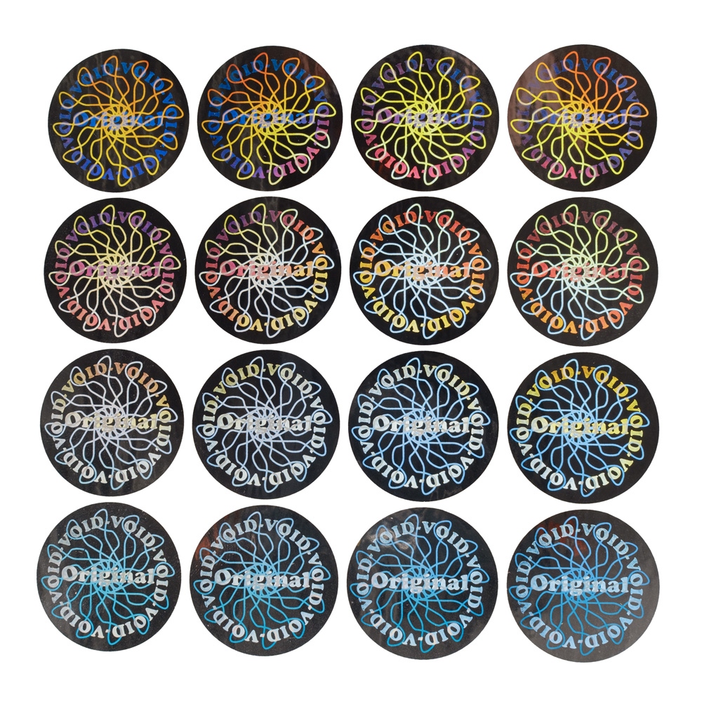 Los hologramas de seguridad autoadhesivos de dos capas son ideales para confirmar el origen y la originalidad del producto. Ausencia de un logotipo de la empresa y la incapacidad de eliminar la pegatina de la superficie hace que sea un elemento de seguridad universal útil en los productos, embalajes y documentos. En la circunferencia hay una palabra "VOID" 6 veces, en el medio está la palabra "original" y hay un dibujo con curvas debajo.