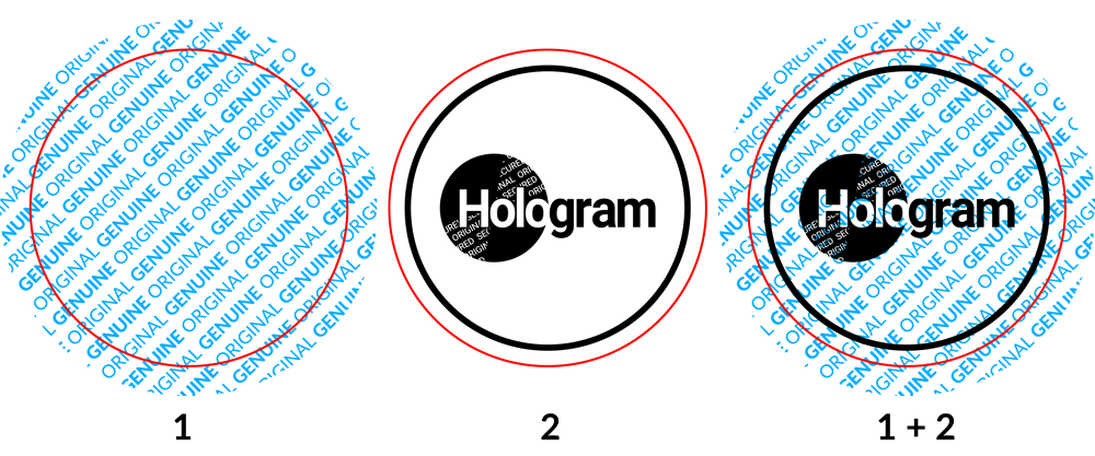 Esta capa lleva, por lo general, la gráfica de fondo que puede ser compuesta p. ej. de las palabras Original, Genuine, Authentic, etc. que van repitiéndose.